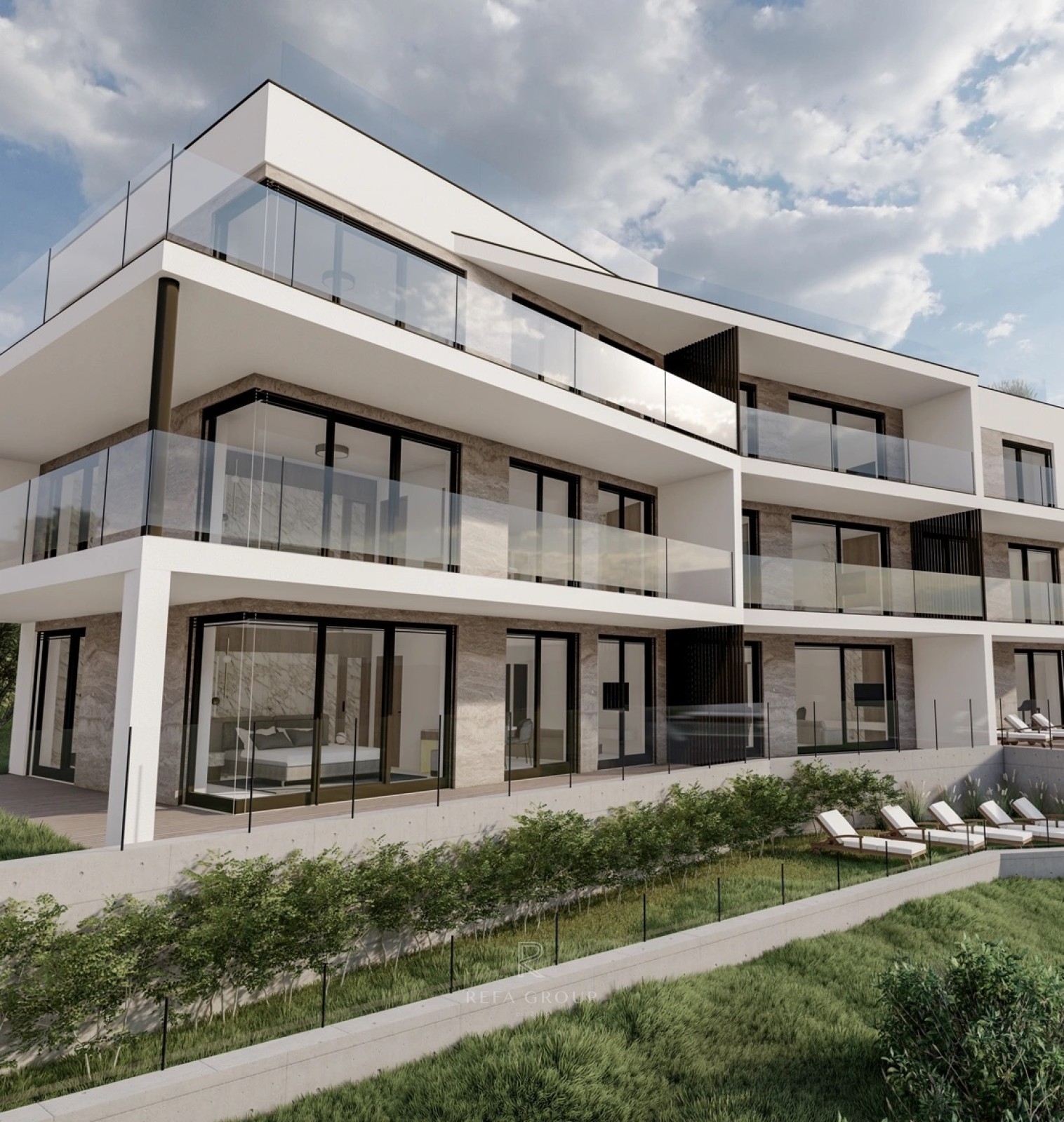 Apartina se nachází v poklidné přímořské vesničce Rtina zhruba 19 km severovýchodně od chorvatského Zadaru. Apartmán o rozloze 77 m2 je situován na jih a jeho dominantou jsou panoramatická francouzská okna. Nemovitost bude připravena k nastěhování v září 2023.
